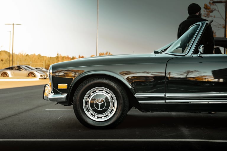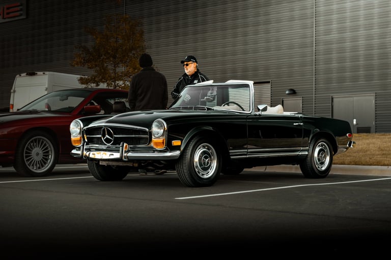 After attending @porschecharlottenorthlake's "Cars & Coffee" on the first Saturday of November 2025, I was able to spend some capturing this classic black Mercedes-Benz 280 SL at the event.